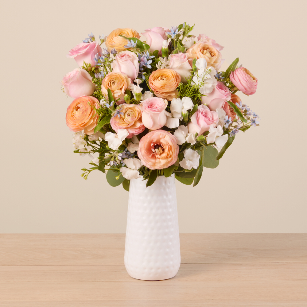 Why moms love it: The arrangements are full and fluffy, and the curated add ons — like a limited-edition Little Words Project bracelet, Poppy & Pout lip balm, and a Nest candle...turn your bouquet into a full gift moment.