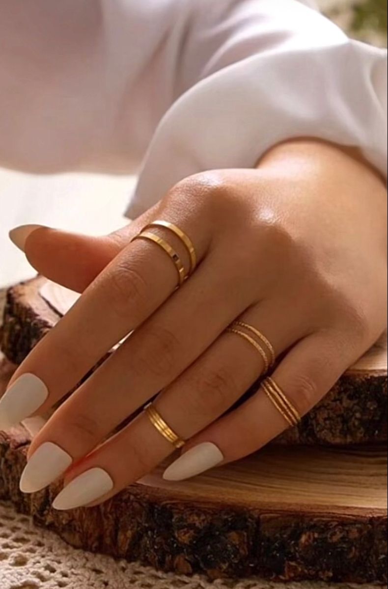 For everyday wear, thin-band styles in 14k gold or sterling silver are best. Small gold rings with a hammered finish catch glints of light wonderfully without screaming for attention or looking gaudy, which bigger rings can tend to do. Try mixing textures made from the same metal to add depth to your look, or experiment with taking one type of finish (whether it's matte, high-polish, or hammered) and running with it to claim a signature style. Etsy is a great source for finding unique pieces that fit this category! We compiled some of our favorite finds here if you want the shortlist.